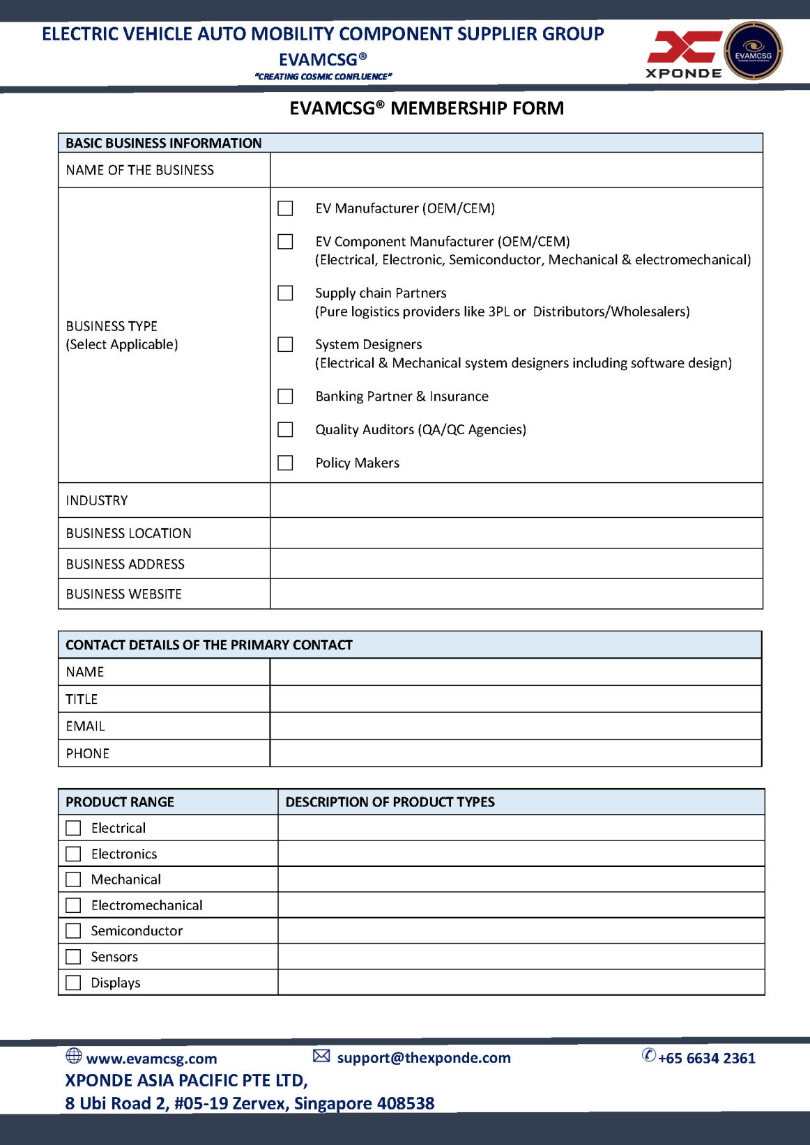 Please download the Membership Form, fill in the details and email to sales@evamcsg.com
