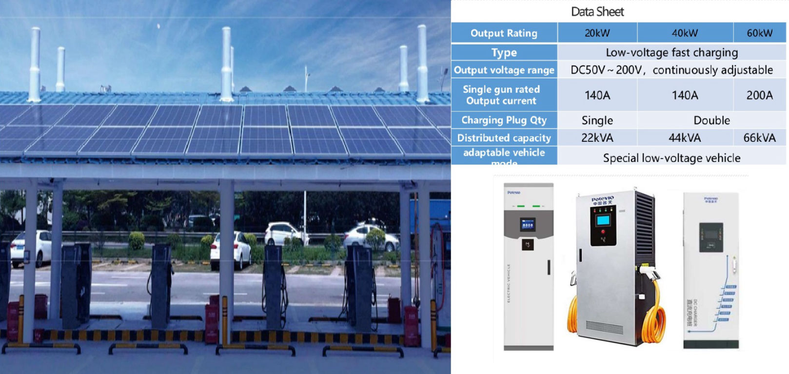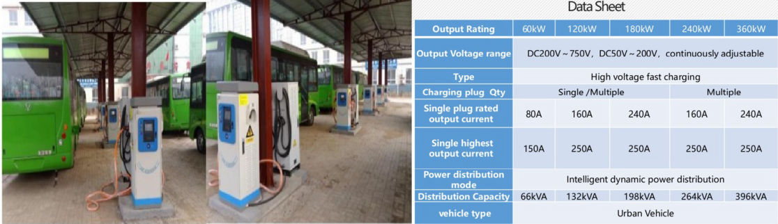 - Public charging infrastructure for fast charging of high voltage EVs. DC quick charging equipment from 60 to 360kW with automatic charging, status display, overcharge protection with good dust and water proof functions which can provide reliable service.